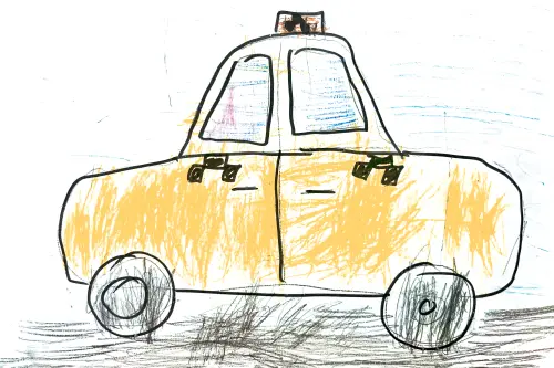 Едем на такси по любимому району Фили-Давыдково на рисование. Мне очень нравятся яркие машинки, поэтому нарисовал машину такси, которая меня возит на рисование.
