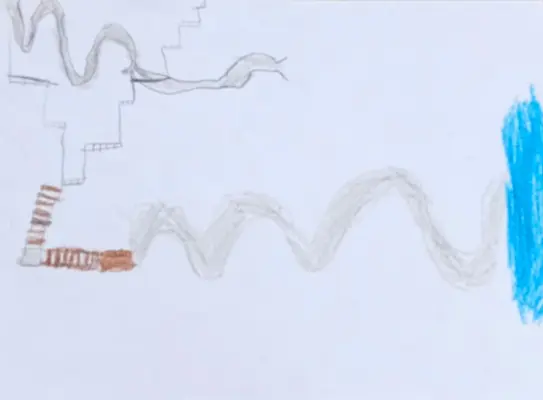 дорога к нашему пруду ведет через дворы, Ленинградский рынок, у которого мы кормим голубей, дорога извивается, как змея, поэтому я ее так нарисовал!
