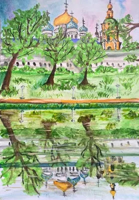 Любимое место всех жителей нашего района - Новоспасский монастырь и пруд, находящийся рядом. Это историческая территория, которое притягивает к себе множество людей со всей Москвы! Приходя практически каждый день на это место и любуясь им, я решила нарисовать этот живописный пейзаж!