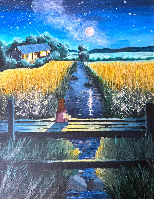 Летняя ночь окутала все вокруг своим покрывалом. Природа, недавно залитая солнечным светом, утонула в бархате ночи, превратившись в призрачные силуэты на фоне усыпанного звёздами неба. Всё замерло в безмолвии, словно прислушиваясь к чему-то невидимому, ощущая присутствие чего-то большего.