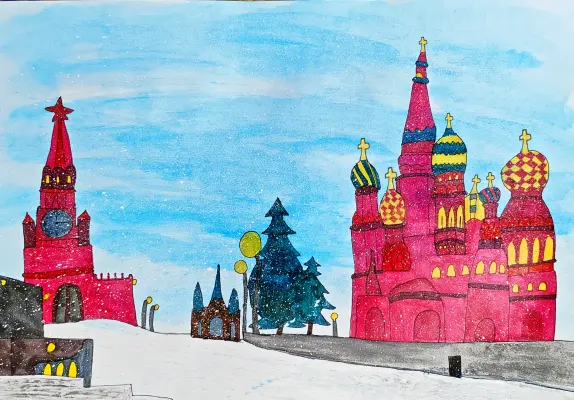 Я впервые побывала на Красной площади. Это был очень интересный для меня день. Я узнала много исторических фактов об этом месте. Вечером появилось настроение нарисовать все, что увидела.