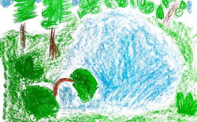 Я нарисовала восковыми карандашами пруд в моём районе Гольяново. Мне нравится рисовать восковыми карандашами, потому что получаются очень яркие цвета. Наш пруд тоже очень яркое место, особенно в хорошую погоду.