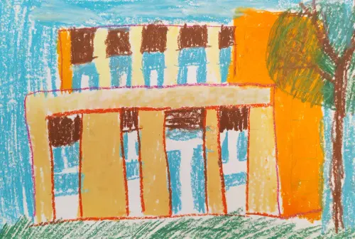 В этой, на мой субъективный взгляд, ещё, пожалуй, ученической работе, отображено воззрение на мою альма-матер, где, такие же, как и я, неоперившиеся птенцы постигают азы изобразительного искусства, которое является огромной поддержкой в подлунном мире.