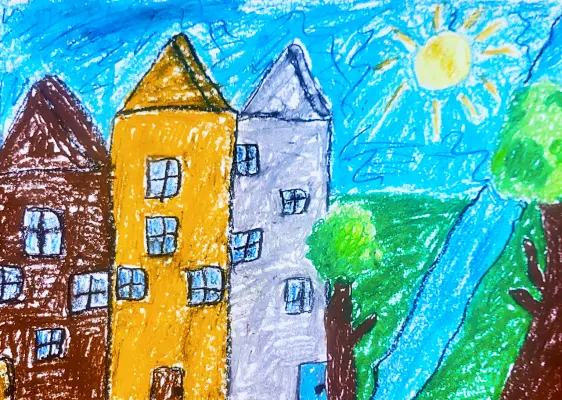 Я нарисовала мой любимый район. Это въезд в посёлок Коммунарка, я там живу.