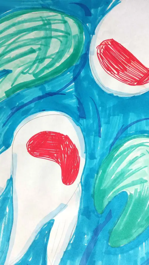 Я очень долго думала, что нарисовать, и в голове возник пруд с рыбками. Наш город построен в лесу? от чего и пошло название Зеленоград (Зелёный город). У нас очень много живности, начиная от мелких жуков, заканчивая ланями. Поэтому нарисовать рыбок было лучшим решением.