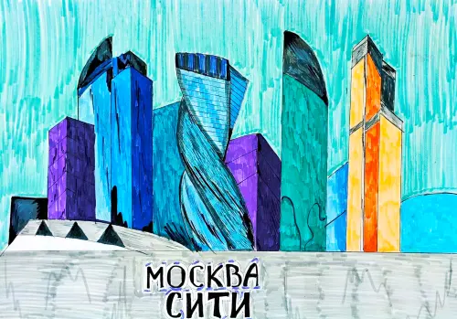 На холсте, словно вызов и мечта, возвышается Москва-Сити. Искрящиеся небоскребы, словно хрустальные осколки. Рисунок наполнен тихой меланхолией и глубокой привязанностью к родному месту. Это не просто изображение, это признание в любви к уголку Москвы.