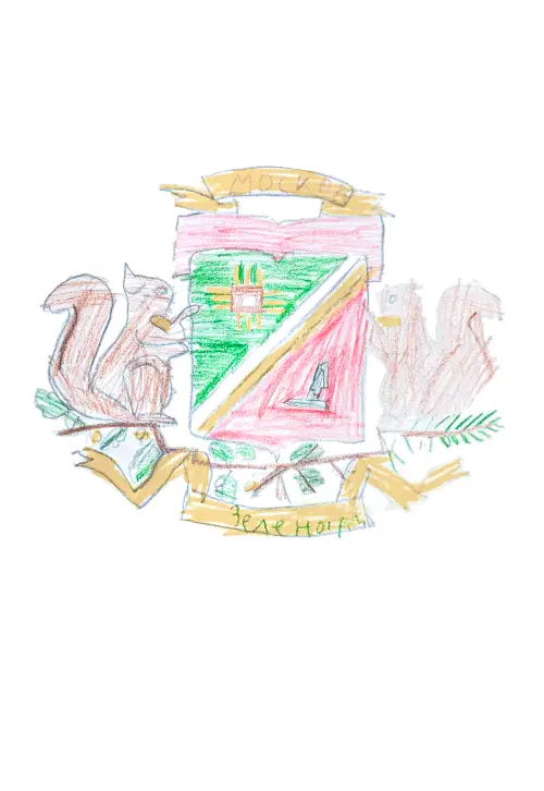 В верхней левой части герба на зелёном фоне изображена стилизованная микросхема. Этот элемент подчёркивает вклад Зеленограда в развитие микроэлектроники в России. В правой нижней части герба на красном фоне изображён монумент «Штыки». Это символ событий декабря 1941 года, когда на этой территории были остановлены и отброшены шедшие на Москву немецкие войска. Слева и справа от гербового щита изображены две белки, сидящие на ветвях дуба и ели. Эта деталь символизирует тесную близость города с природными лесными ландшафтами.