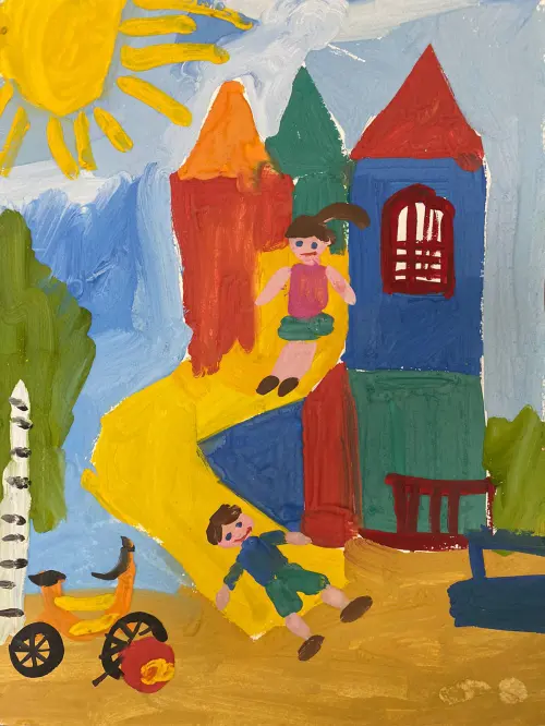 У нас в Митино после благоустройства установили классные детские площадки. Наша площадка с крутыми горками, замком и другими активностями. Особенно любим гулять, когда светит солнышко и хорошая погода.