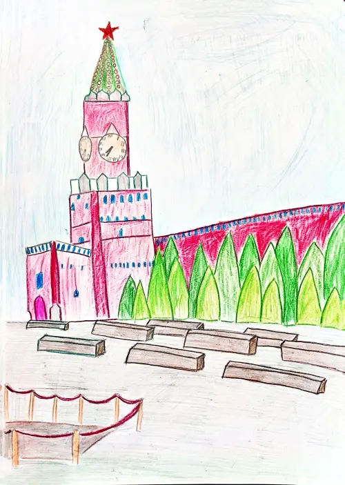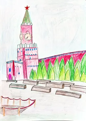 На листе бумаги, немного помятом по краям, оживает Красная Площадь. Не та, строгая и величественная, которую мы привыкли видеть на фотографиях, а совсем другая – детская, искренняя и полная волшебства.