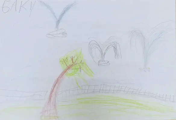 я нарисовала зеленую зону у нашего пруда в сквере у кинотеатра Баку, этим жарким летом мы здорово укрываемся под зелеными деревьями, оазис