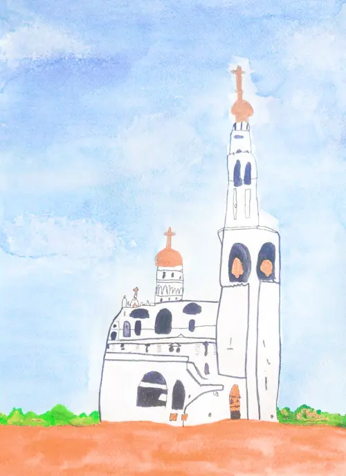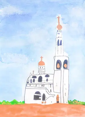 Яна очень любит храмы. Поэтому для своей работы она и выбрала церковь своего района. Ей мечта, чтоб церковь была и рядом с домом и над всей нашей страной всегда светило мирное голубое небо.