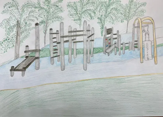Напротив моего дома есть чудесная спортивная площадка, там много полезных тренажеров. Я с друзьями часто там занимаюсь. Сама площадка в окружении высоких зеленых деревьев и в далеке от машин.