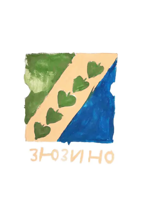 Рисунок символизирует район Зюзино в Москве. На рисунке изображены два цвета: зелёный и синий, разделённые желтой полосой, на которой нарисованы зелёные сердечки. В нижней части рисунка написано слово «Зюзино» жёлтым цветом.