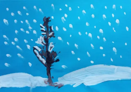 Зима — мое любимое время года. Я очень люблю снег, лепить снеговиков и особенно зимние деревья. Когда можно потрясти веточку и на тебя падает снежок. Такая ель растет в моем дворе.