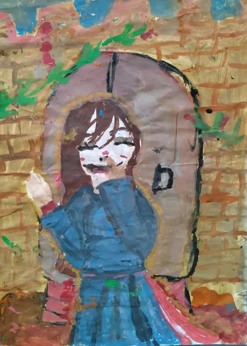«Я во дворе» - это автопортрет или сюжетная сцена, передающая момент тихого созерцания или ностальгии. Художник изображена в простом городском дворе.