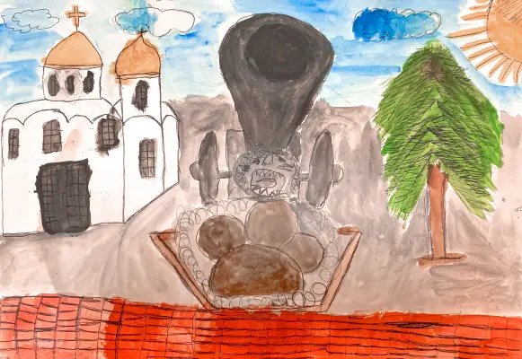 Я была на территории Кремля. Я увидела Царь-пушку и церковь Двенадцати Апостолов и захотела их нарисовать. Царь-пушка занесена в Книгу рекордов Гиннеса как самая большая. Несмотря на свои размеры и внешний вид, считается, что Царь-пушка никогда не использовалась для стрельбы. Патриарший дворец в Кремле совмещён с церковью Двенадцати апостолов. Храм Двенадцати Апостолов в Кремле получил своё название в честь двенадцати апостолов, учеников Иисуса Христа, которые распространяли его учение. Мне очень понравилось гулять по территории Кремля.