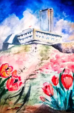 Нарисовала "Парк 40-летия Победы"! Потому что это мой любимый парк. Там мы гуляем с мамой! А еще я очень люблю там фонтаны, летом очень освежают!