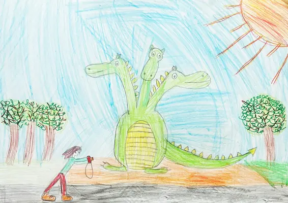 Змей Горыныч - мой любимый на аллее сказочный персонаж. Каждый раз когда иду домой из школы с одноклассницами, играем рядом с ним. Он мне кажется очень добрым и счастливым.