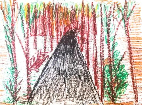 Рисунок "Тропаревский лесопарк": зеленый оазис в городе. Пышные кроны деревьев и извилистые тропинки создают ощущение уюта. Передает спокойствие природы, приглашая к прогулке и отдыху.