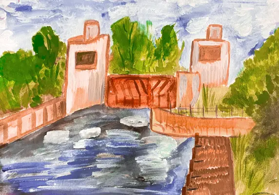 Мне очень нравится это место. Папа приводит меня сюда гулять. Здесь очень живописно. Мне нравится наблюдать за тем, как работает шлюз. Это один из шлюзов рукотворной водной артерии, соединяющей Москву-реку с Волгой.