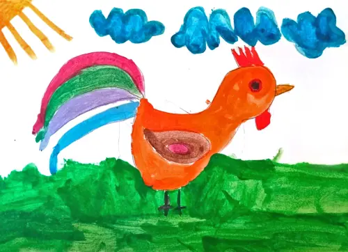 Яркое, динамичное, полное жизни – петух во дворе создаёт атмосферу деревенского утра, бодрости и природной гармонии. Картина может быть как празднично-сочной, так и с налётом ностальгии по простой сельской жизни.