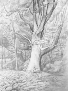 Образ дуба описывается в разных художественных произведениях. Я увидела такой дуб в нашем парке и действительно он подходит под описание: «Это был огромный, в два обхвата дуб, с обломанными, давно суками и с обломанной корой, заросшей старыми болячками».