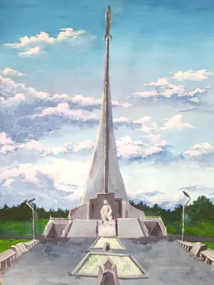 Я нарисовал монумент "Покорителям Космоса" на ВДНХ, потому что считаю его символом не только района, города, но и всей страны. Каждый раз, когда я прохожу мимо, меня впечатляет его высота и устремлённость в небо. Этот монумент напоминает о том, как важны мечты и стремление к новым открытиям. На моём рисунке он изображён на фоне голубого неба, чтобы показать его величие и вдохновляющую силу. Для меня это место особенное — рядом всегда много людей, которые фотографируются и любуются им. Я постарался передать атмосферу гордости и уважения к тем, кто сделал первые шаги в космос и подарил нам этот памятник.