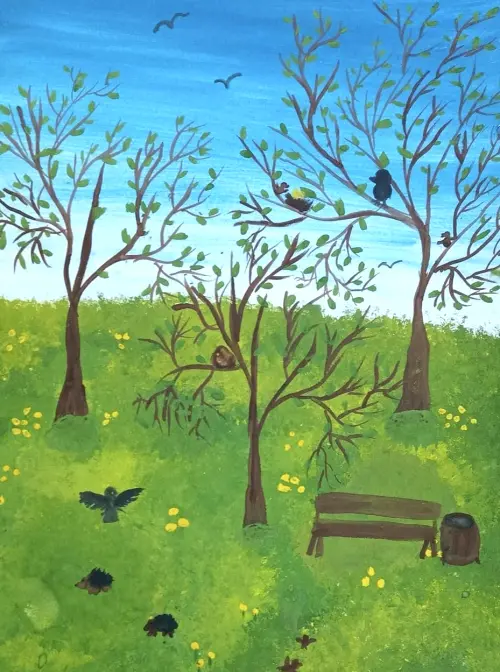 Я люблю мой район, он очень зеленый. Обожаю прогуливаться по Битцевскому парку среди деревьев. В парке много разных птиц, которых мы иногда подкармливаем.