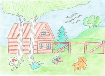 Я люблю свой двор. На его территории есть качели, карусели, разные спортивные тренажеры. Я люблю гулять во дворе, играть в разные игры и строить домики из песка, а еще прыгать и бегать. И собак люблю.