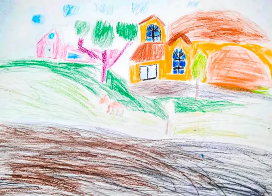 В нашем посёлке есть много больших и современных домов, но присутствуют и маленькие собственные дома в один или несколько этажей. Один из них, в деревне Расторопово, я и нарисовал.