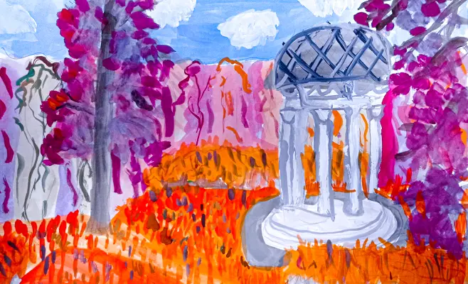 Есть у меня самое любимое место в усадьбе Остафьево: сначала надо пройти мимо главного дома, потом через парк, в котором нужно обязательно покормить ручных белок, иначе они тебя просто не пропустят, далее по тропинке вдоль пруда, и там, среди деревьев-великанов можно найти небольшую, но очень милую беседку-ротонду. Я захожу в нее и словно попадаю в другой мир, любуюсь на воду и представляю как давным-давно дамы в красивых белых платьях, с зонтиками и веерами прятались здесь от солнца...