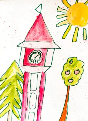 Достопримечательностью нашего Краснопахарского района можно считать башню с часами, которую видно с любого места нашей Красной Пахры. Давно хотела её изобразить.