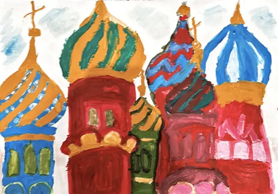 Работа выполнена гуашью, изображён самый красивый и живописный Храм Москвы - яркий, со сложной и красивой архитектурой и деталями. Очень люблю гулять по Красной площади и, в первую очередь, любуюсь этим Храмом.