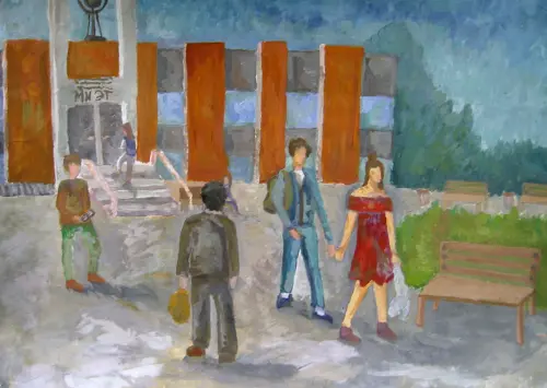 На работе изображено здание Национального исследовательского института «Московского института электронной техники», расположенного в Зеленограде. Его можно назвать одной из достопримечательностей Зеленограда