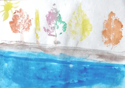 Осень одно из моих любимых времен года. Я гуляю с родителями по парку, собираю красивые разноцветные листья от разных деревьев - так и получился мой рисунок.