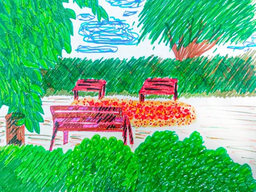 На рисунке изображен Детский Черкизовский парк. Работа выполнена фломастерами.