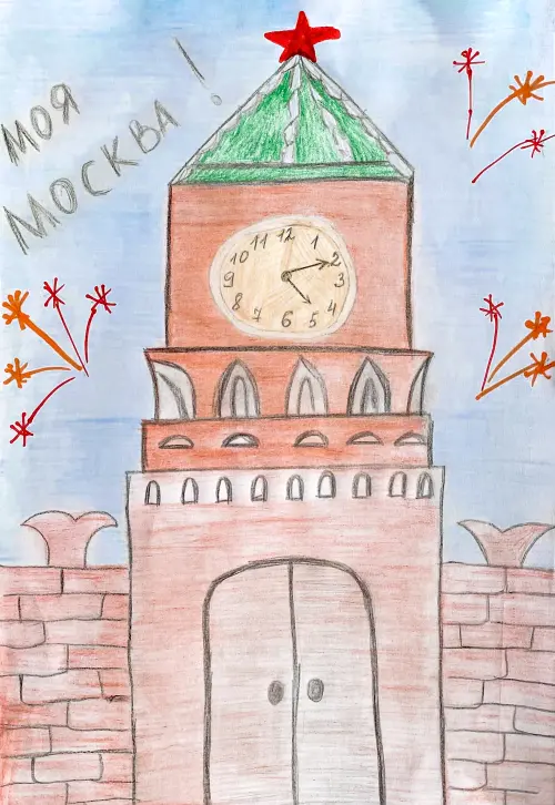 Меня зовут Полина, мне 7 лет. Я закончила 1 класс. Я нарисовала часы на Красной площади. Я очень люблю свой город. Мне нравится гулять со своей семьей по разным достопримечательностям нашего города.