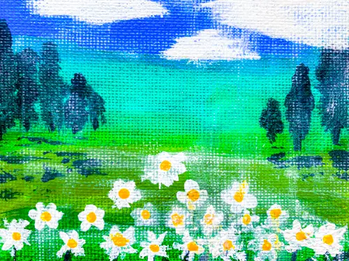 Это пейзаж парка «Фили». Наш парк очень красивый. Летом там много деревьев и цветов. Мне хотелось передать очарование этого места. На рисунке мое любимое место в парке «Фили» - возвышенность над рекой.