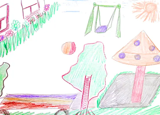 Двор обрамлён невысокими кирпичными домами, окрашенными в тёплые тона. Их фасады, покрытые следами времени, рассказывают о десятилетиях, которые они стойко пережили. Подоконники украшены разноцветными горшками с цветами, добавляя живописности и уюта. Мой двор любимый самый лучший. У нас много зелени.