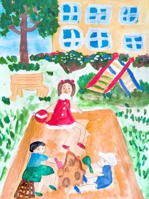 Мы любим гулять с моими друзьями во дворе. Здесь есть современные комплексы для увлекательных игр. Малыши могут поиграть в песочнице, скатиться с горки, покачаться на качелях или полазать на лестнице. Взрослые люди могут отдохнуть и посидеть на лавочках. Весело у нас во дворе!