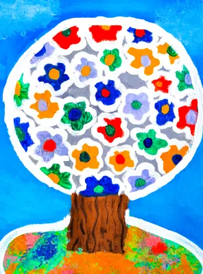 На Жулебинском бульваре, недалеко от детской площадки, стоит любимая всей местной детворой декоративная конструкция из металла - большой шар, усыпанный яркими цветами. Бумага, гуашь