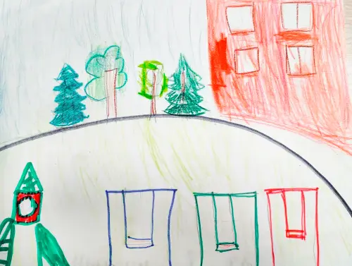 Мой двор любимый, потому что я в нем гуляю с рождения. Мне все уже знакомо. Горку недавно установили новую. Она мне очень нравится. Я представляю себя на ней космонавтом в ракете.