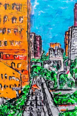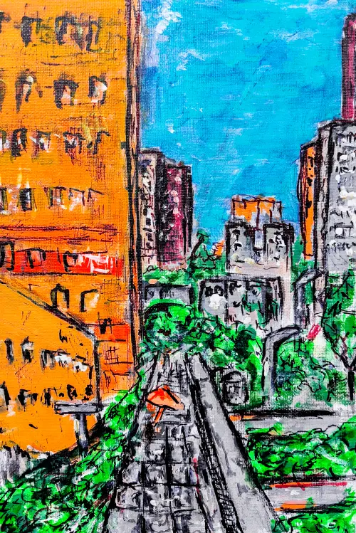 Вдохновением для работы послужила фотография любимого района, сделанная после грозы. А вот стиль написания картины был навеян работами художников-импрессионистов. В качестве материала использовался холст на картоне, акриловые краски и цветные маркеры.
