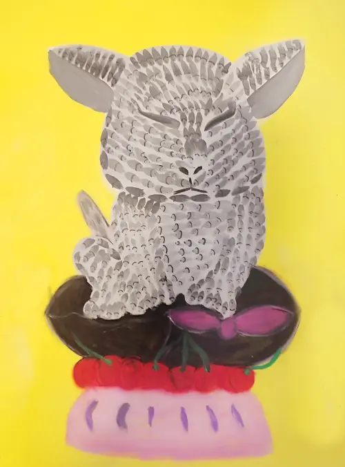 Здравствуйте! Я очень люблю котиков. А мама мне сказала, что недалеко от нашего дома есть такая интересная скульптура котика. Мы съездили на него посмотреть, и я его нарисовал.