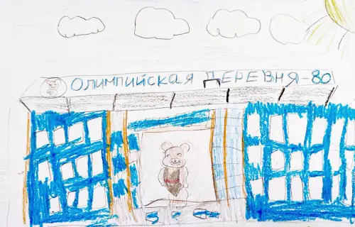 Я нарисовала «Спортивный комплекс Олимпийской деревни — 80», он был построен на Западе Москвы для участников летней XXII Олимпиады 1980 года. Сейчас там работают секции по различным видам спорта. Я очень люблю гулять с мамой в парке Олимпийской деревни. Здесь есть: лодочная станция, спортивно-игровой верёвочный городок «Холмы», лыжно-беговой клуб, амфитеатры и сцена на воде, летний кинотеатр, детские и спортивные площадки, пикниковые зоны. В парке проходят городские праздники, музыкальные, театральные, спортивные фестивали, концерты. В 2024 году в парке открыли филиал усадьбы Деда Мороза.
