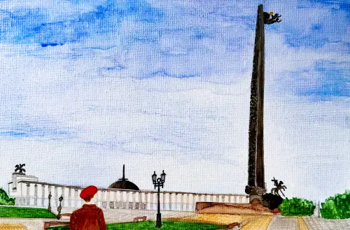 Поклонная гора - символ памяти и воинской славы, а юнармеец отражает патриотизм и преемственность поколений. Хочу показать гордость за историю родного района и важность воспитания уважения к подвигам защитников Отечества.