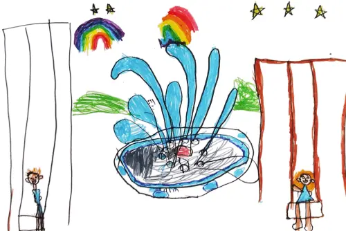 Дочь очень любит гулять у фонтана, у памятника Бирюзову. Летом фонтан подсвечивается и переливается всеми цветами радуги, весной он особенно красив в окружении розовых цветов яблонь. Фонтанчик небольшой и привлекает множество жителей района Щукино, приглашает отдохнуть, насладиться красотой зеленой листвы, цветов и конечно же шуршащим радостным танцем маленького фонтанчика. Да, кстати, вокруг фонтана есть качели-скамейки, где можно отдохнуть.