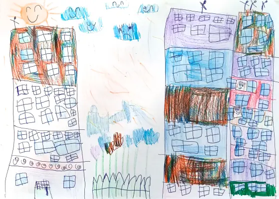 Я нарисовала свой двор, в котором очень много больших домов, в них живёт много интересных людей и моих друзей. Чтобы в нашем дворе было всем хорошо и приятно гулять, мы с моей мамой сажаем цветы, гортензии, кустарники и деревья. Создаём уют не только в своей квартире, но и во дворе своего дома. Приезжайте посмотреть на нашу красоту!!!