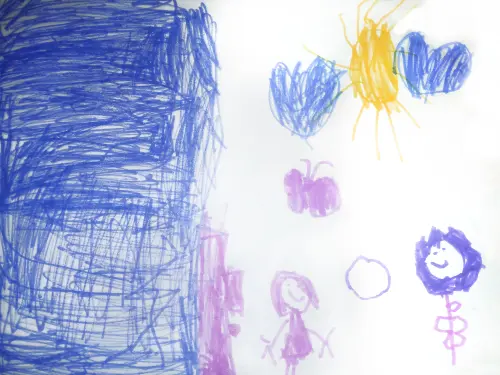 Прогулка по набережной Москвы реки в парке 850-летия Москвы в районе причала Марьино. На рисунке изображение цветов, которые улыбаются, и я, а также сама река Москва