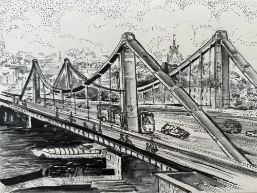 Мне очень нравится Крымский мост. Здесь мы любим гулять с семьёй, наслаждаться проходящим речным транспортом, набережной парка Горького, архитектурой и красотой города.